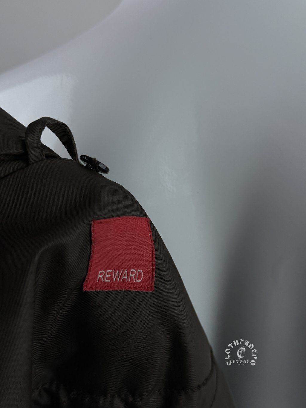 Prednú časť dopĺňa nášivka Aviation Division 1957, ktorá odkazuje na technickú a športovú estetiku značky. Na rukáve sa nachádza praktické utility vrecko spolu s červenou nášivkou „Reward“, ktorá dodáva bunde výrazný military / aviation charakter.