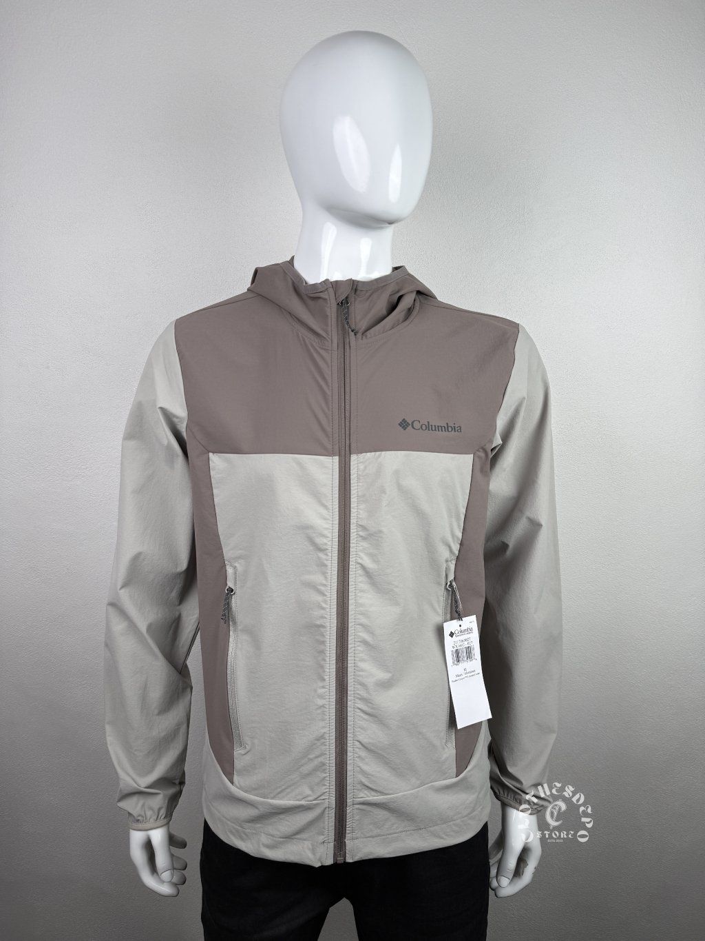 Pánska softshell bunda značky Columbia v modernom dvojfarebnom prevedení (béžová / hnedá). Bunda je vyrobená z kvalitného technického materiálu, ktorý je vetruodolný, ľahký a zároveň mierne vodoodpudivý – ideálna voľba na prechodné obdobie alebo každodenné nosenie.