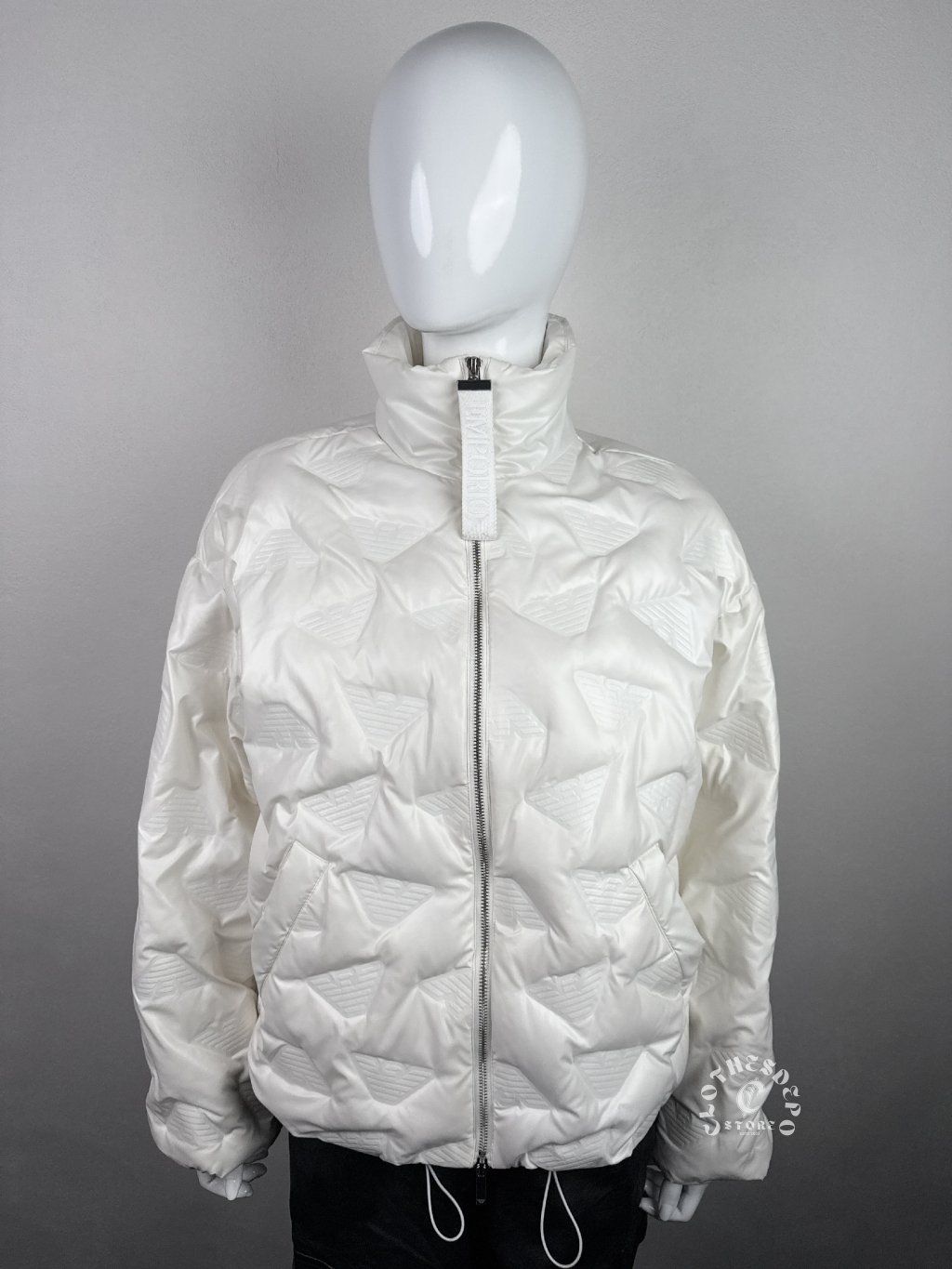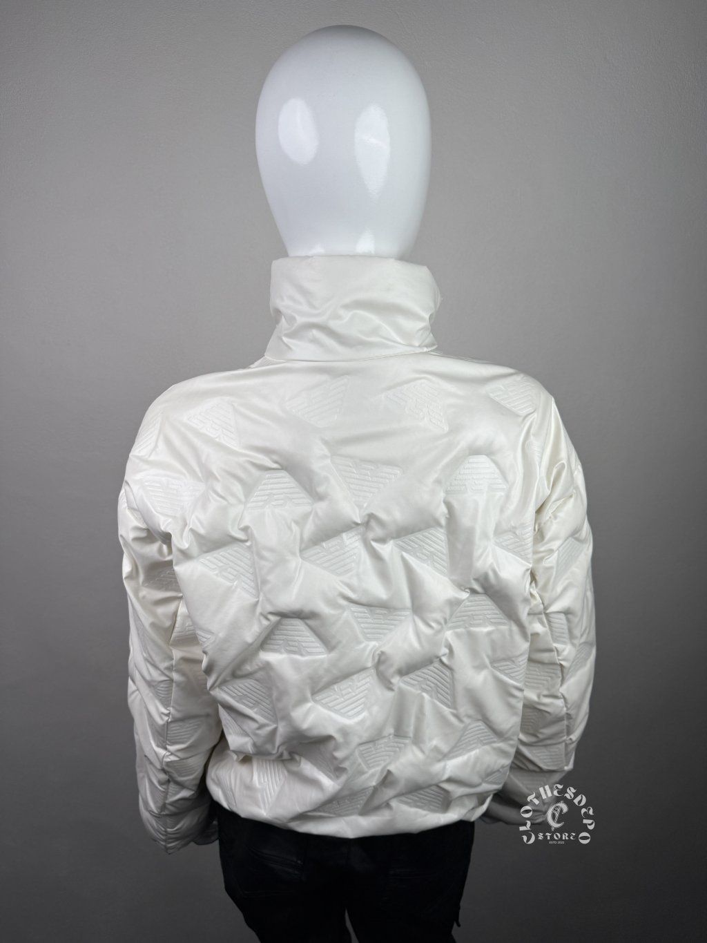 Vzor: embosované Armani eagle logo po celej bunde