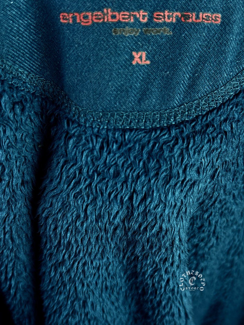 Teplá fleece mikina s kapucňou značky engelbert strauss v tmavomodrej / petrolejovej farbe. Mikina je vyrobená z mäkkého, hustého fleece materiálu, ktorý poskytuje maximálny komfort a teplo počas chladných dní.