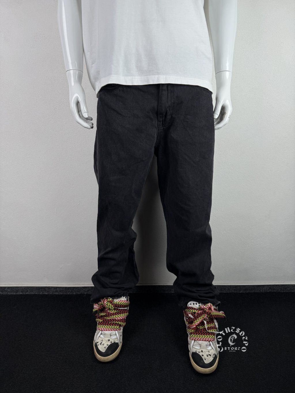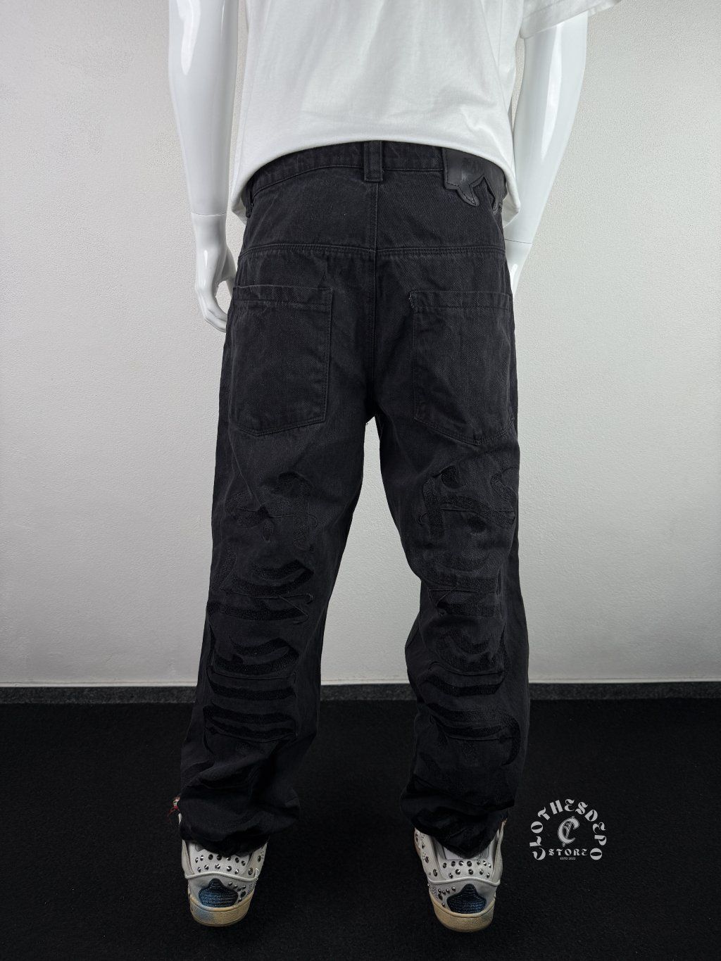 Rifle majú klasický rovný až mierne zúžený strih, ktorý dobre sedí na postave a hodí sa ku sneakers aj hoodies. Zadná časť je dizajnovo upravená s prešitými a textúrovanými detailmi, čo robí kus unikátnym.