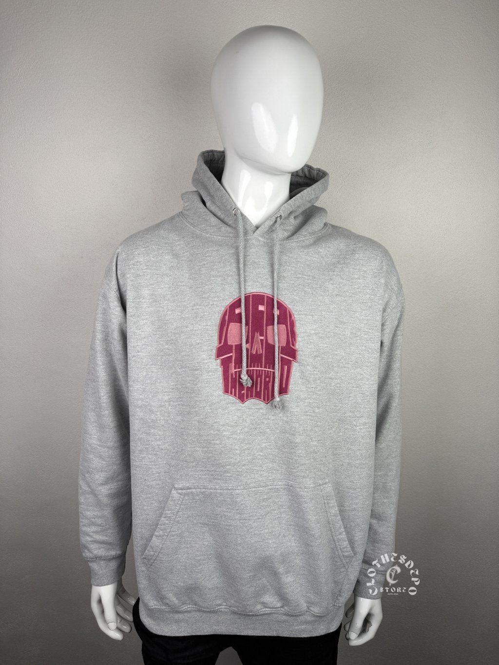 Štýlová sivá hoodie značky Freak The World s výraznou grafikou lebky v ružovej farbe na prednej strane. Minimalistický, ale zároveň výrazný dizajn robí z tejto mikiny ideálny kúsok pre každodenný streetwear outfit.