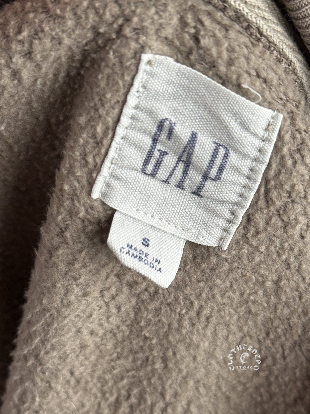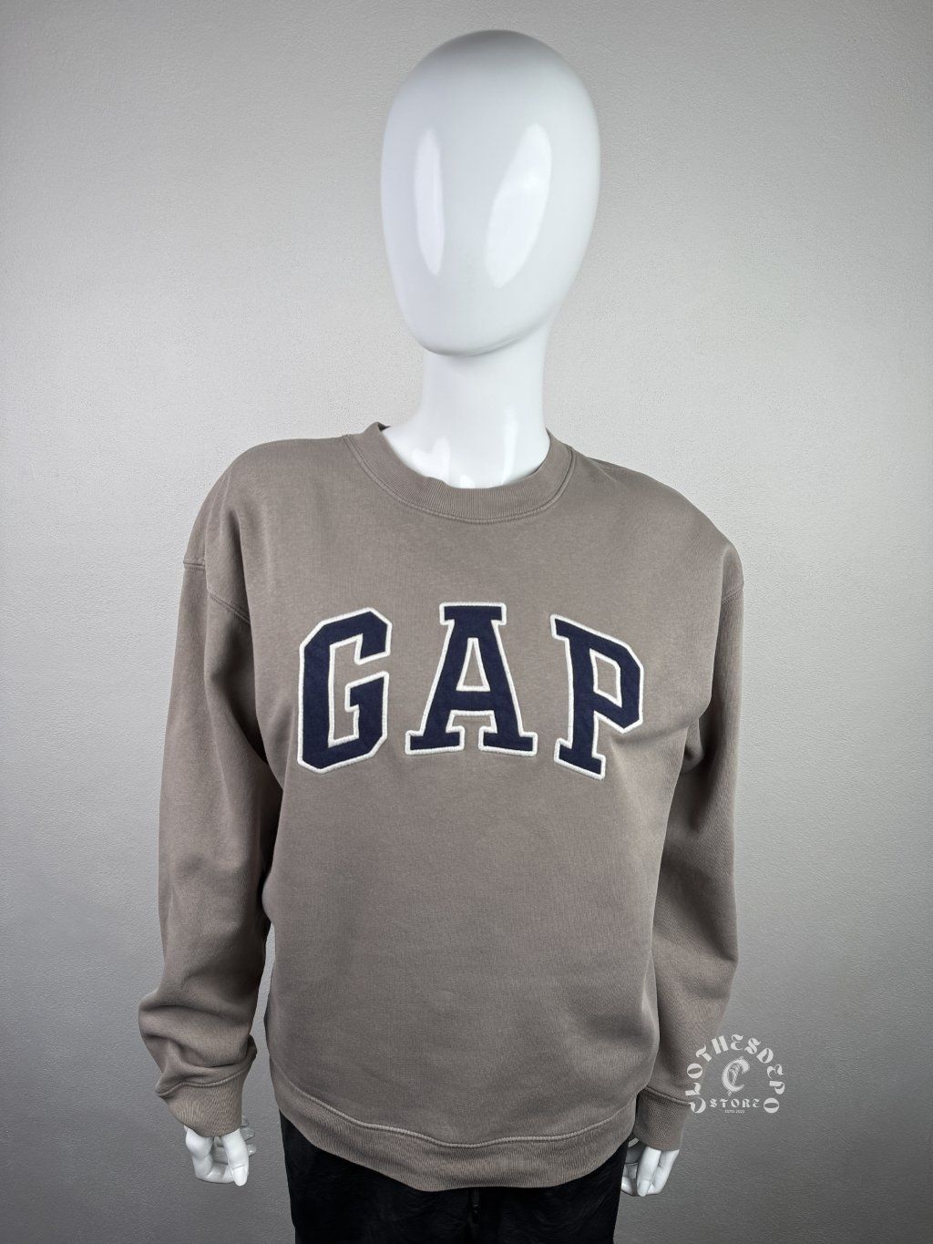 Mikina je v béžovej / taupe farbe a na prednej strane má výrazné GAP logo v tmavomodrej farbe, ktoré patrí medzi ikonické dizajny tejto značky. Vďaka jednoduchému a čistému dizajnu sa mikina veľmi dobre kombinuje s džínsami, teplákmi alebo cargo nohavicami.
