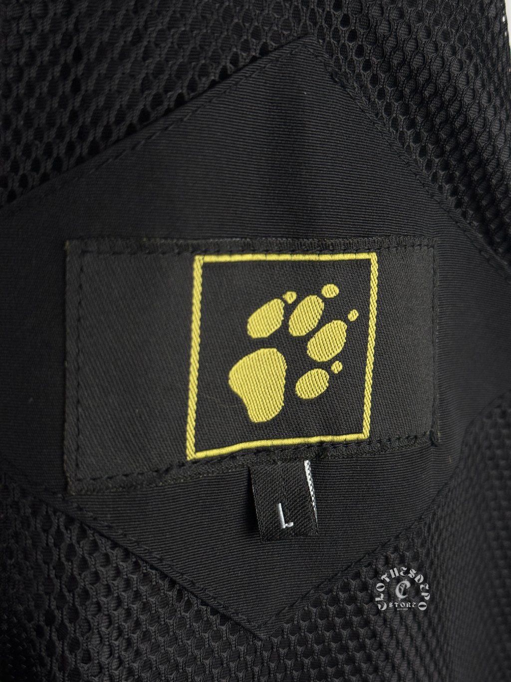 Na hrudi sa nachádza logo Jack Wolfskin s ikonickou stopou, ktoré je symbolom značky zameranej na outdoor vybavenie a dobrodružstvo v prírode. Rukáv je doplnený o nášivku s logom, ktorá podčiarkuje autentický dizajn bundy.