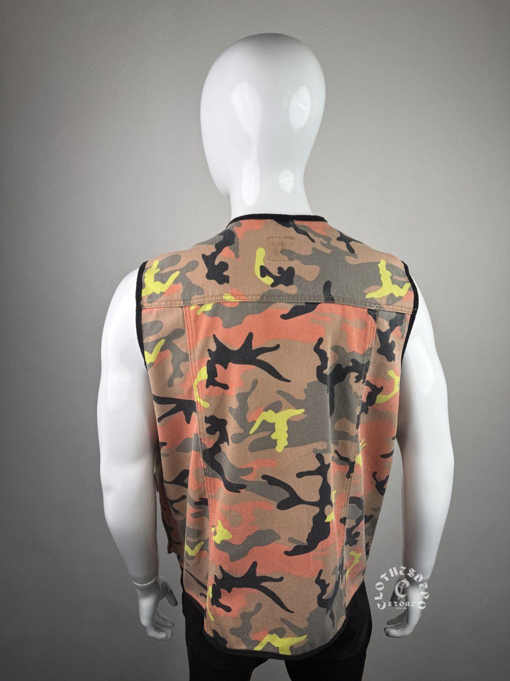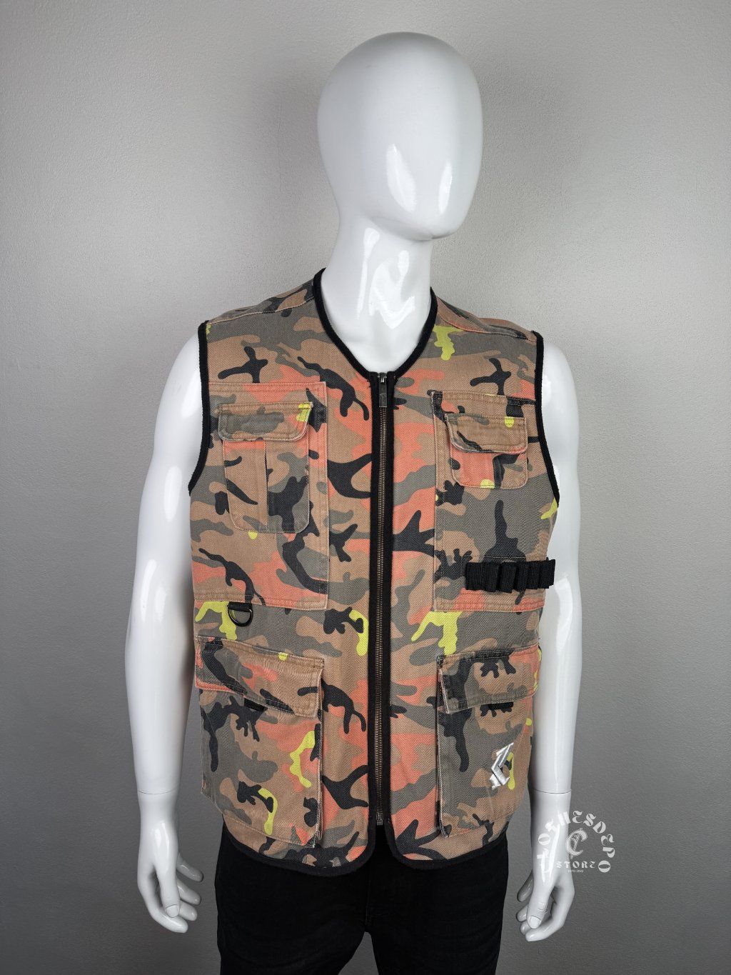 Originálna Karl Kani vesta v výraznom camouflage dizajne s oranžovo-zelenými akcentmi. Typický 90’s / Y2K streetwear kúsok, ktorý kombinuje urban štýl s funkčným utility prevedením.