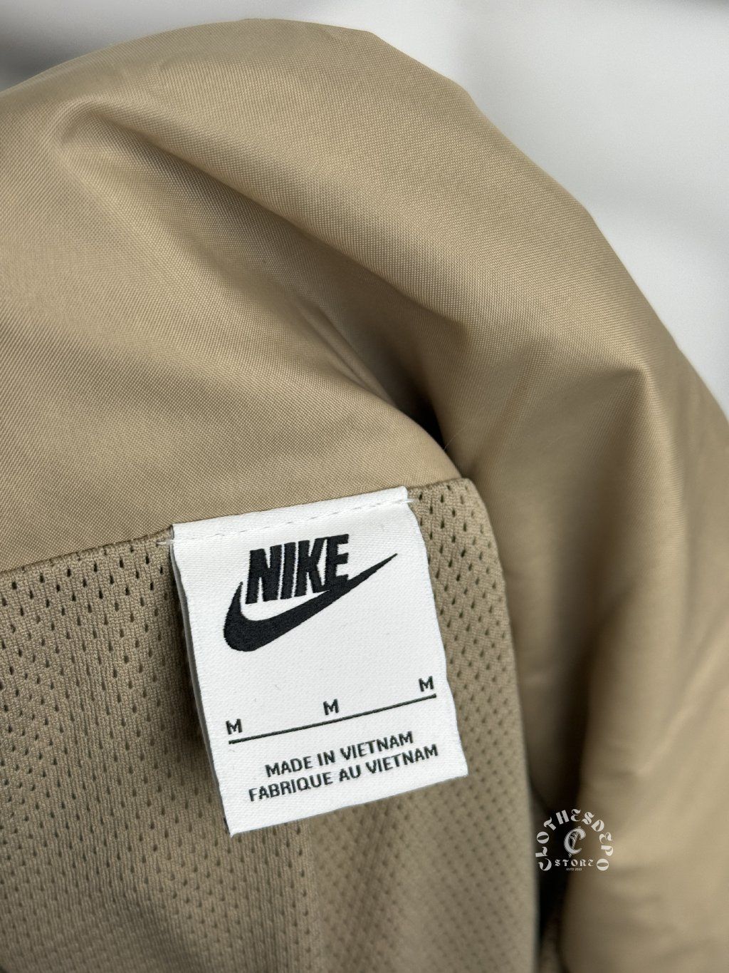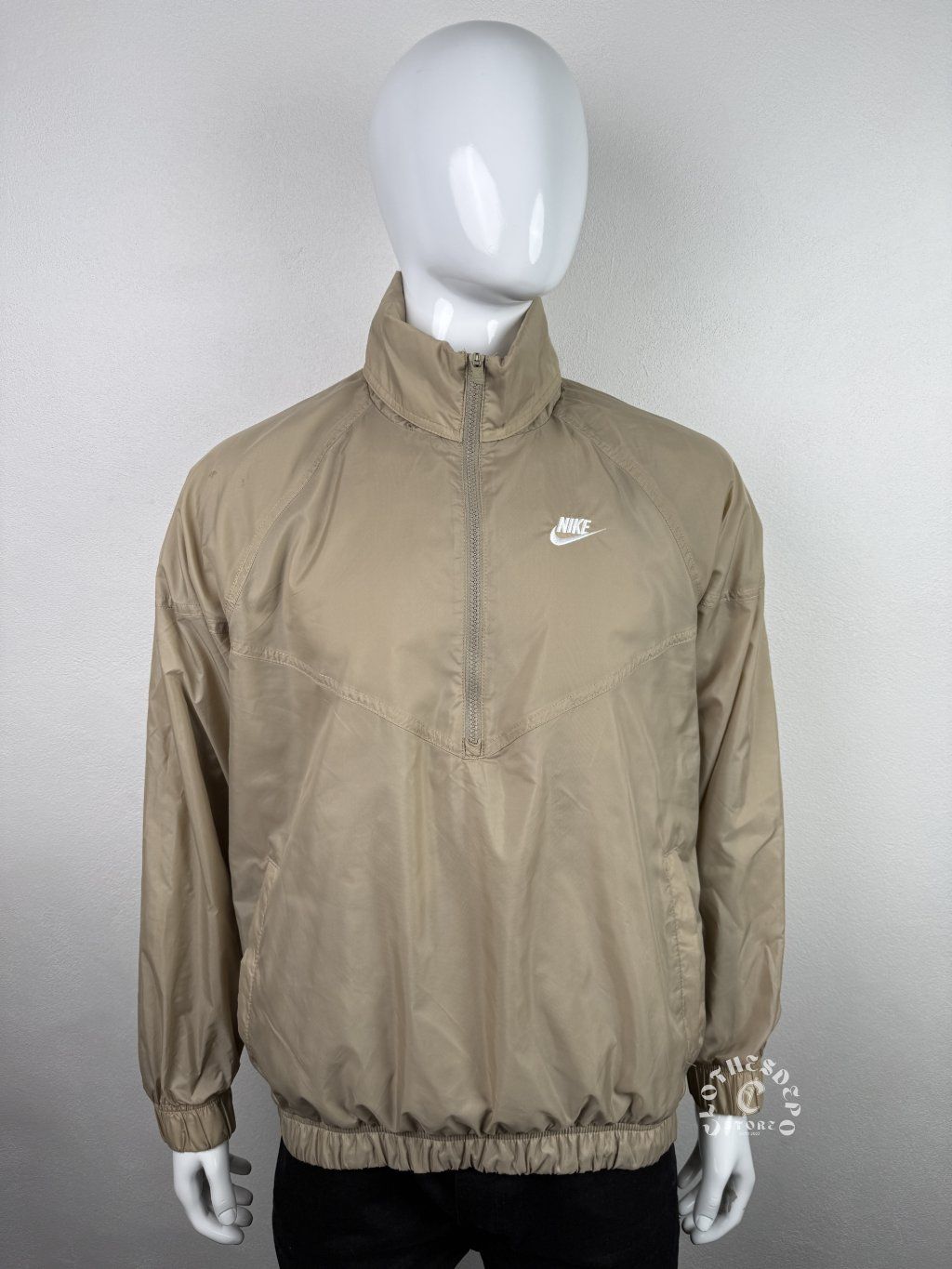 Ľahká béžová bunda typu anorak / windbreaker od značky Nike, ktorá je ideálna na prechodné obdobie alebo každodenné nosenie. Minimalistický dizajn dopĺňa ikonické Nike logo na hrudi, čo robí tento kúsok nadčasovým a ľahko kombinovateľným.