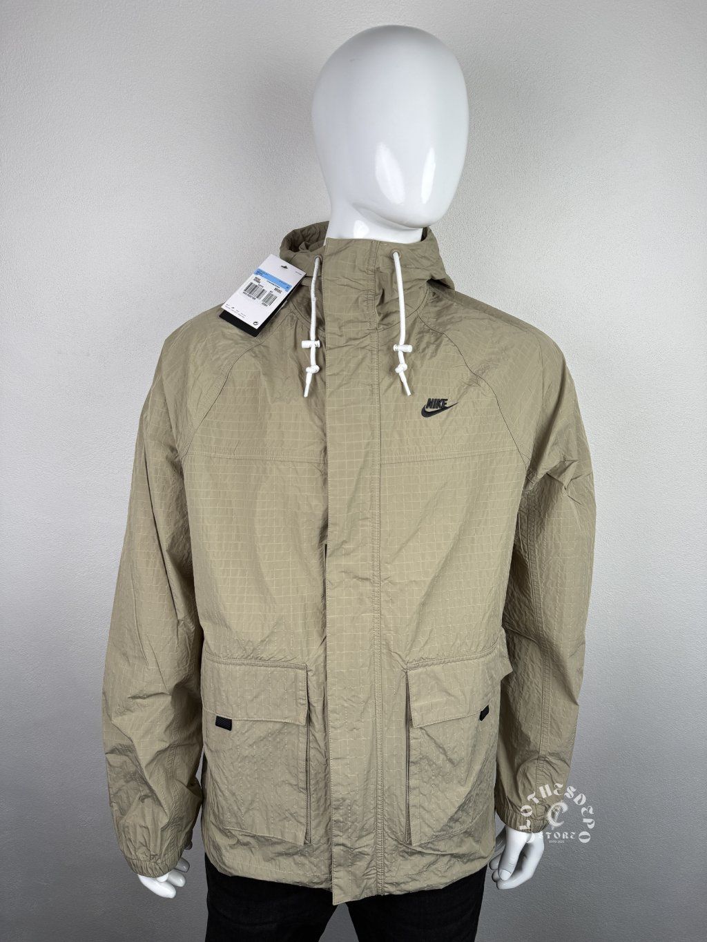 Štýlová béžová vetrovka od značky Nike, ideálna na prechodné obdobie (jar / jeseň) alebo ako ľahká vrstva na layering. Minimalistický dizajn dopĺňa malé čierne logo Nike na hrudi, ktoré pôsobí čisto a nadčasovo.