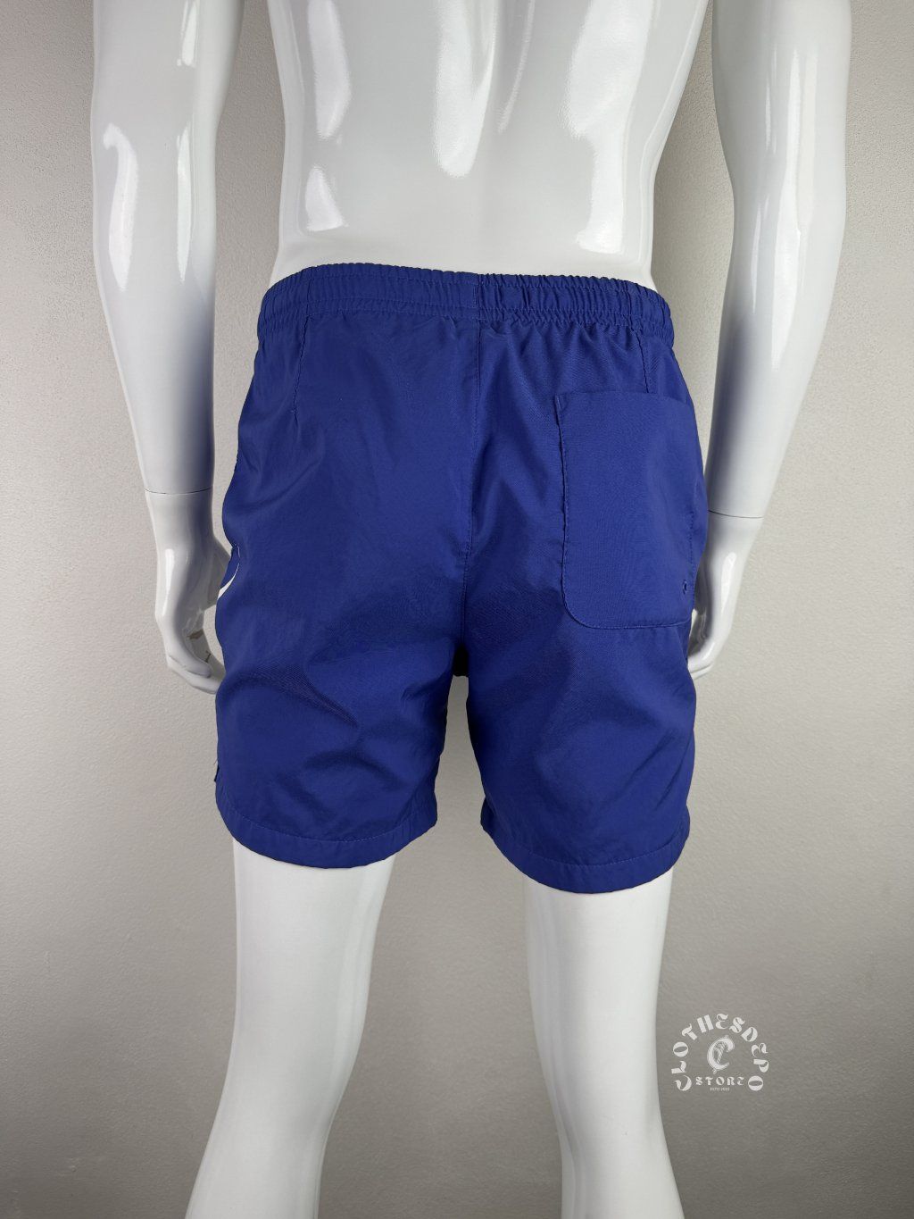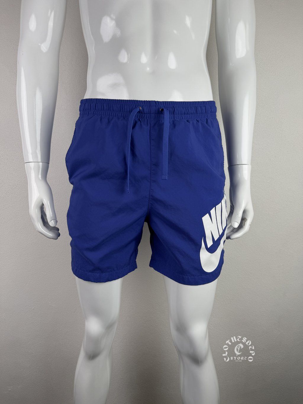 Štýlové pánske plavkové kraťasy od značky Nike v výraznej modrej farbe s veľkým ikonickým logom na nohavici, ktoré okamžite pritiahne pozornosť.