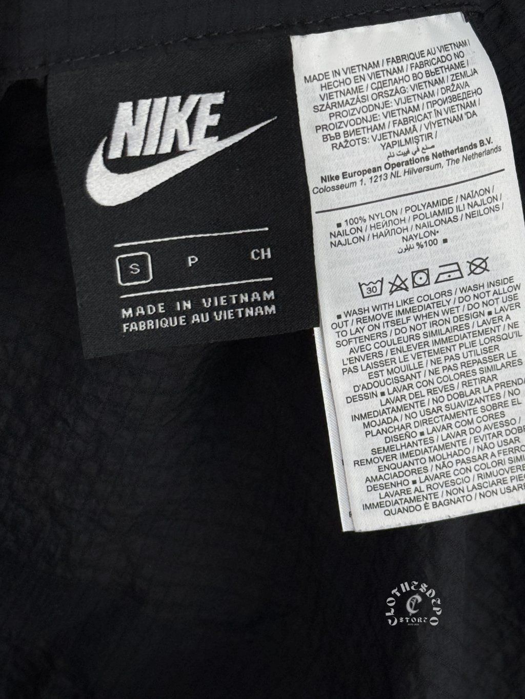 Na prednej strane sa nachádza ikonické Nike Swoosh logo, zatiaľ čo na zadnej strane dominuje veľké Swoosh logo, ktoré vytvára výrazný streetwear efekt. Rukávy sú zakončené elastickými manžetami pre lepšie prispôsobenie a komfort.