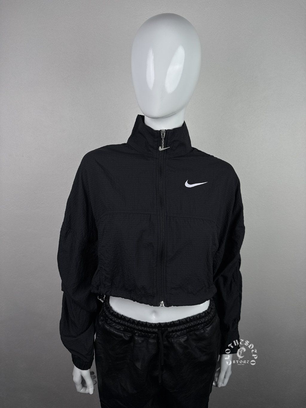 Model má cropped (skrátený) strih, ktorý je veľmi populárny v streetwear a athleisure móde. Bunda sa zapína pomocou predného zipsu a je doplnená o vyšší golier, ktorý pomáha chrániť krk pred vetrom.