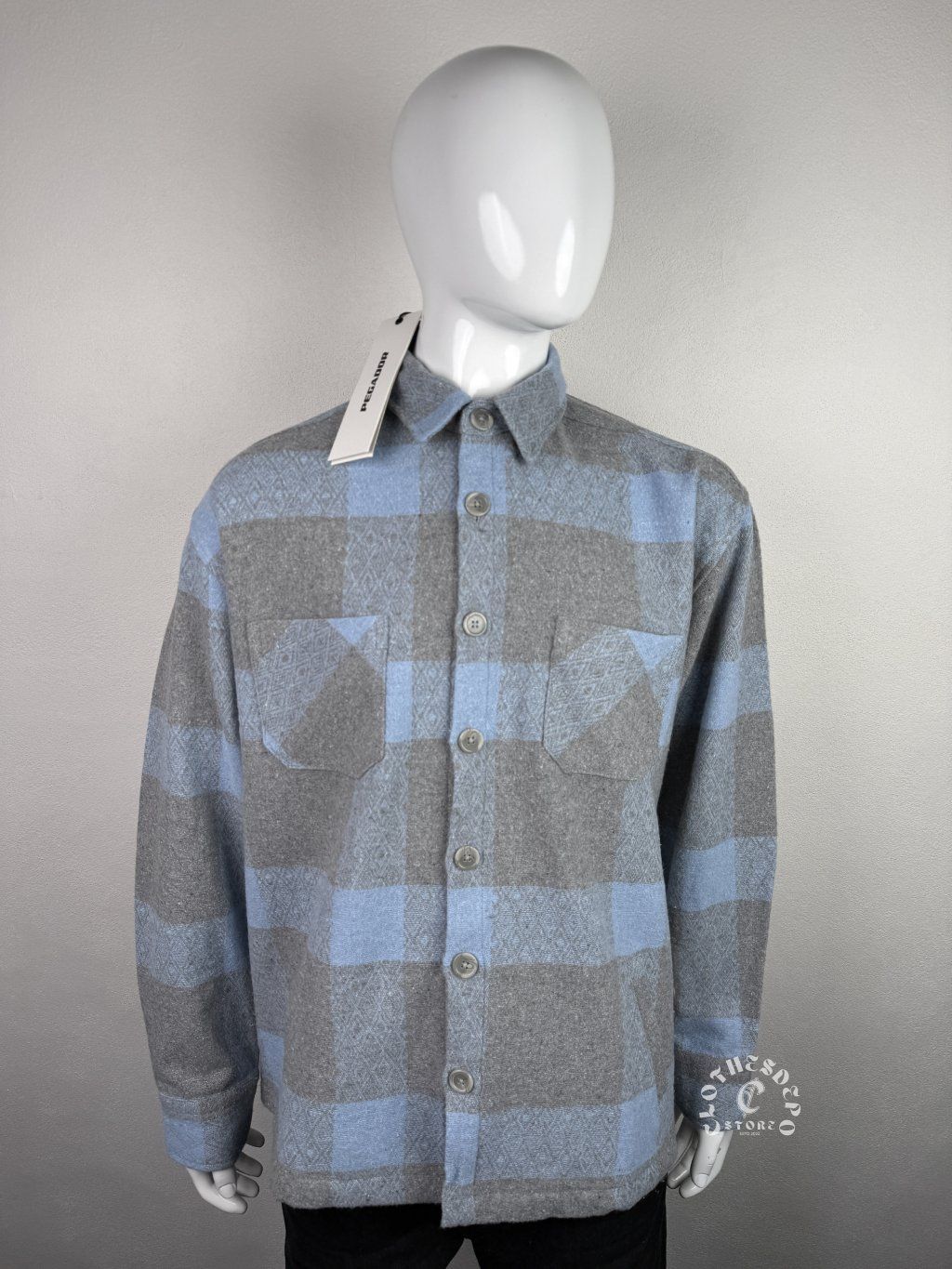Štýlová Pegador flanelová košeľa (heavy flannel) v kombinácii sivej a svetlomodrej farby, ktorá perfektne zapadá do moderného streetwear štýlu. Ide o kvalitný, hrubší materiál, ktorý je ideálny na chladnejšie dni – môžeš ju nosiť ako košeľu alebo ako ľahkú bundu (overshirt).