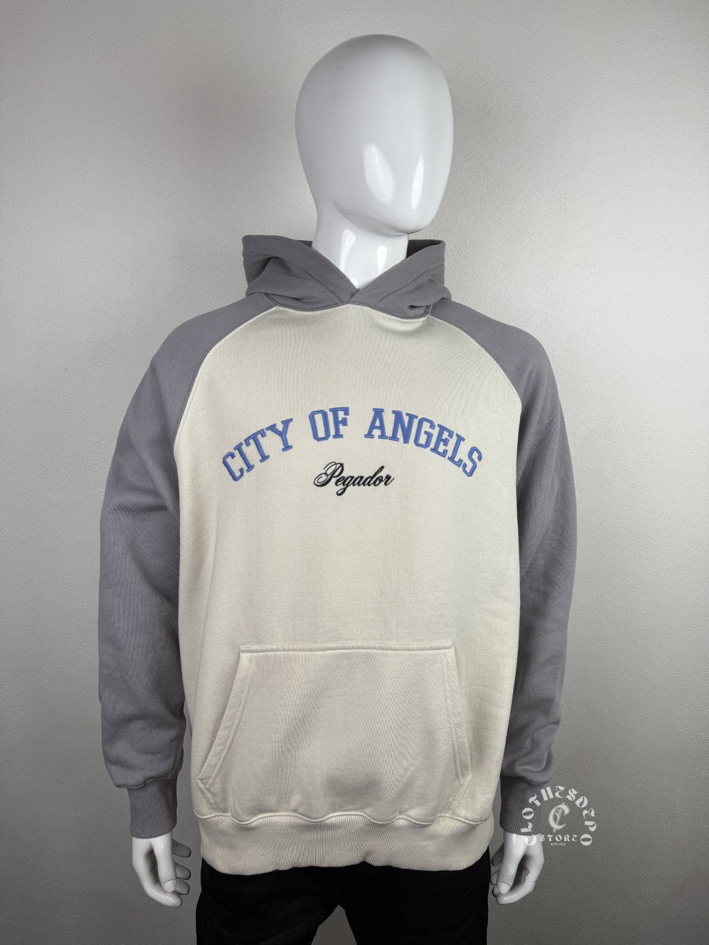Štýlová mikina od Pegador v dvojfarebnom prevedení (grey/cream) s výrazným nápisom „City of Angels“ na hrudi. Moderný streetwear kúsok, ktorý kombinuje clean dizajn s jemným vintage vibe.