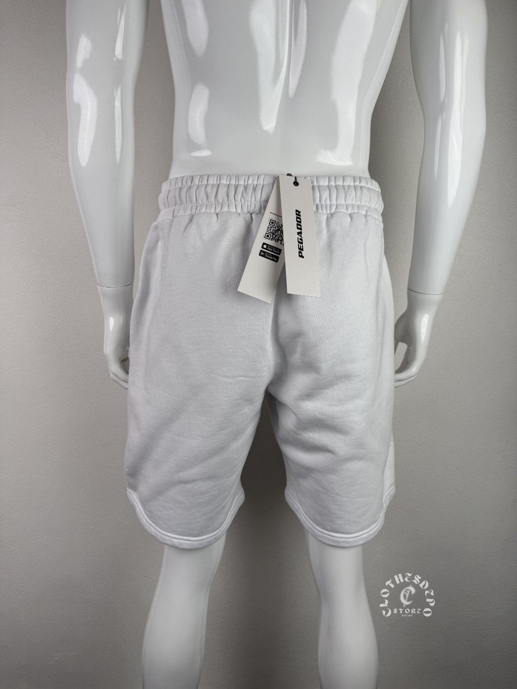 Minimalistické pánske teplákové kraťasy značky Pegador v čistej bielej farbe, ktoré pôsobia extrémne clean a premium.