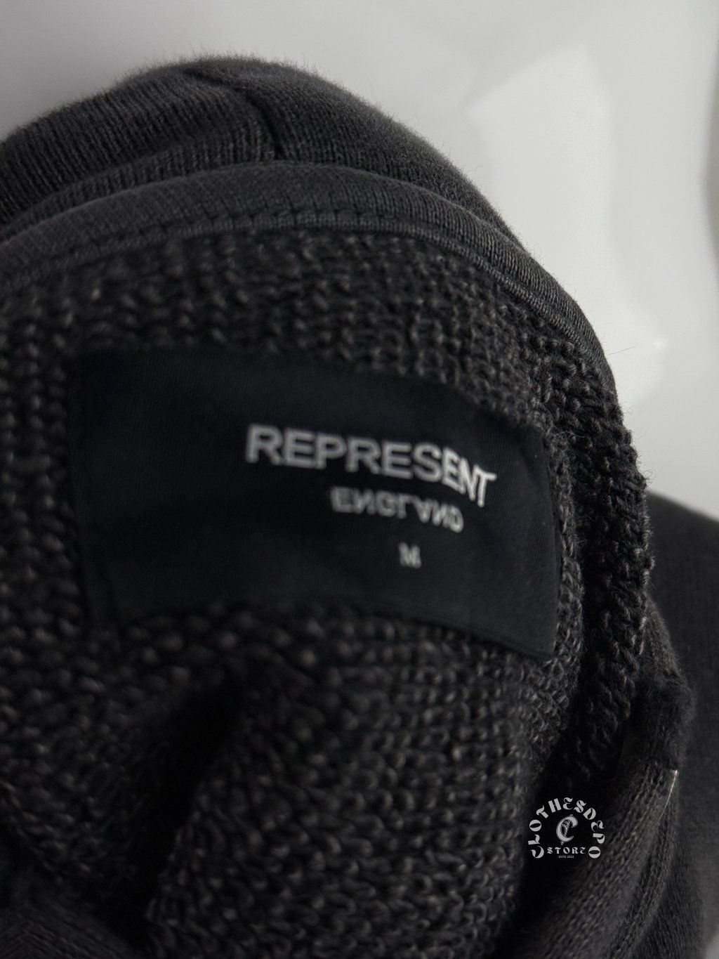 Mikina má klasický pullover hoodie strih s kapucňou a klokankovým vreckom. Materiál je hrubšia bavlna s jemným vnútorným fleece povrchom, ktorý poskytuje vysoký komfort a teplo. Represent je známy používaním kvalitných heavyweight cotton materiálov a oversized strihu, ktorý je charakteristický pre ich moderné kolekcie.