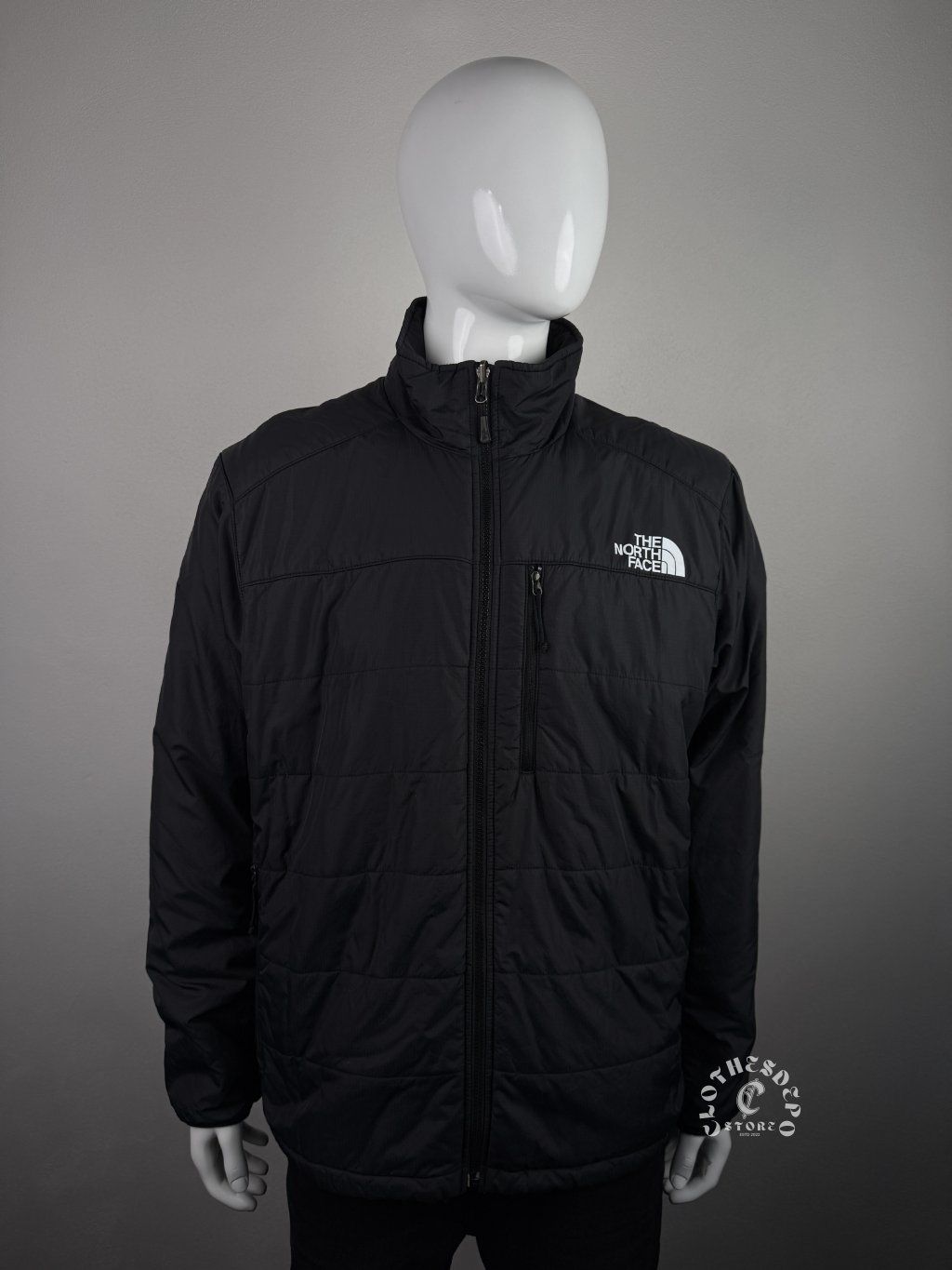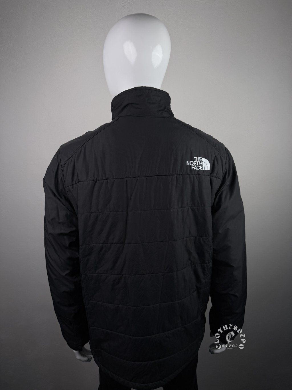 Bunda má prešívanú konštrukciu panelov, ktorá rovnomerne rozkladá izoláciu Primaloft a zlepšuje tepelný komfort. Vysoký golier poskytuje ochranu krku pred vetrom a chladom. Zadná časť bundy obsahuje ďalšie logo The North Face, ktoré dopĺňa charakteristický dizajn značky.