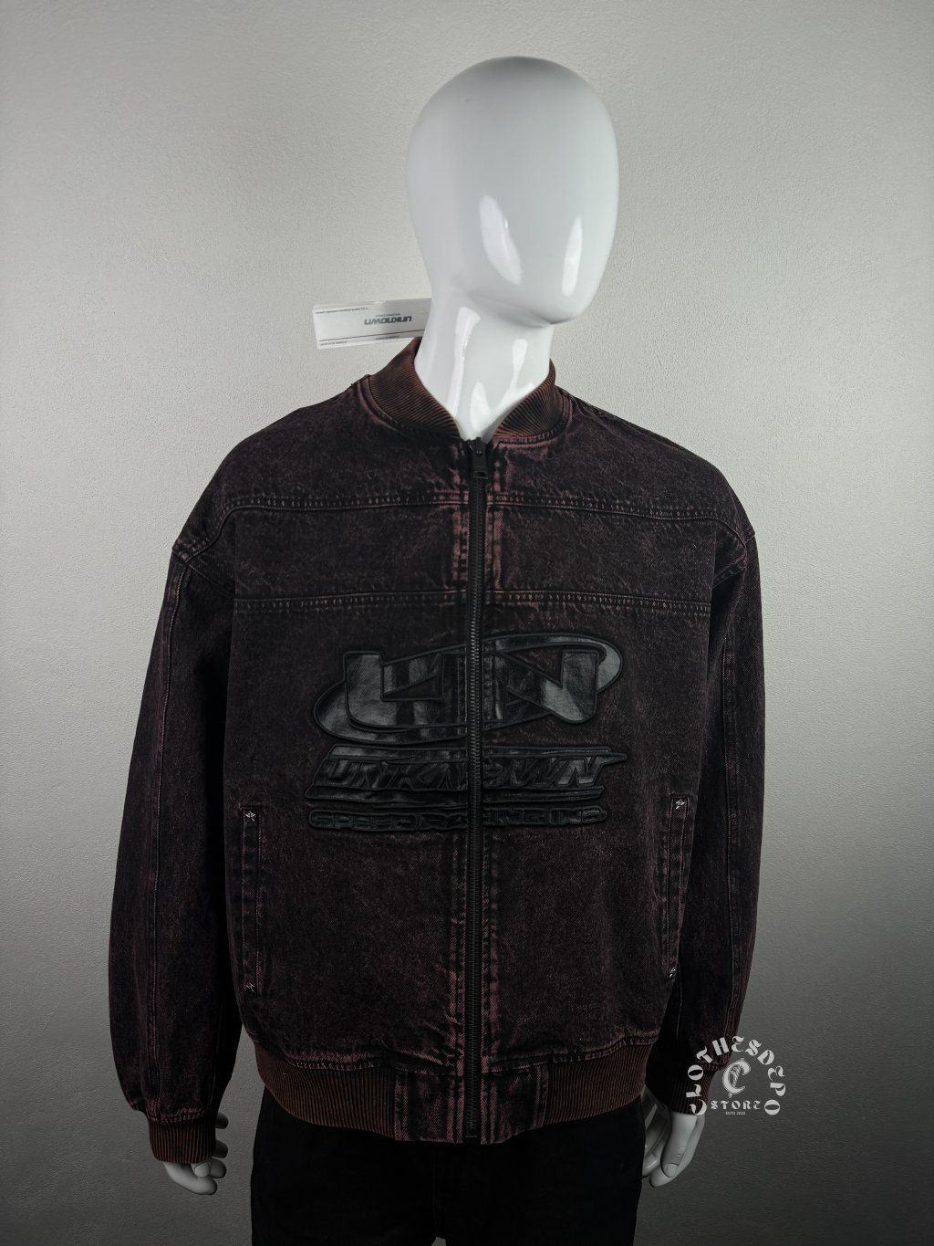 Originálna streetwear bunda od britskej značky Unknown London, ktorá je známa svojimi výraznými grafikami, kvalitným spracovaním a moderným dizajnom. Tento model predstavuje unikátny bomber štýl s výrazným acid wash denim efektom, ktorý vytvára vintage vzhľad a dodáva bunde charakteristický streetwear look.